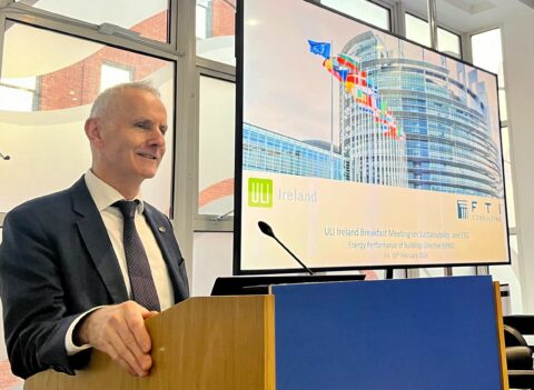 Following a packed schedule of events in 2023, ULI Ireland’s first breakfast event of 2024 proved to be another very interesting one. Such was the interest in the subject of Sustainability and the impending Energy Performance of Buildings Directive (EPBD), that the event (sponsored by FTI Consulting) had to move to a bigger venue at the Dublin Chamber of Commerce office to accommodate everyone who wanted to attend.